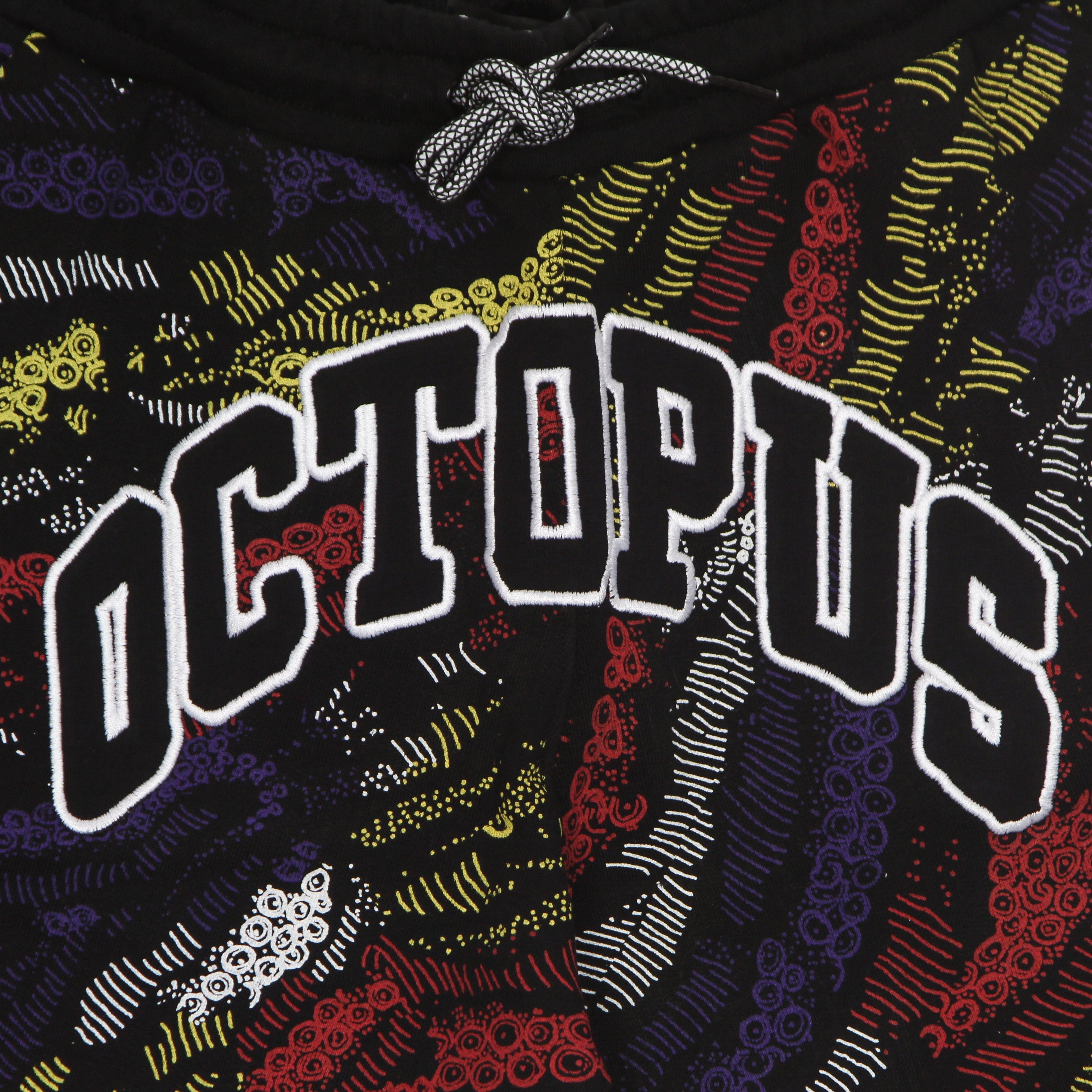 Octopus-Logo auf gummiertem Aufnäher auf der rechten Seite aufgenäht, gestickt auf aufgenähtem Etikett auf der linken Seite und auf der Vorderseite