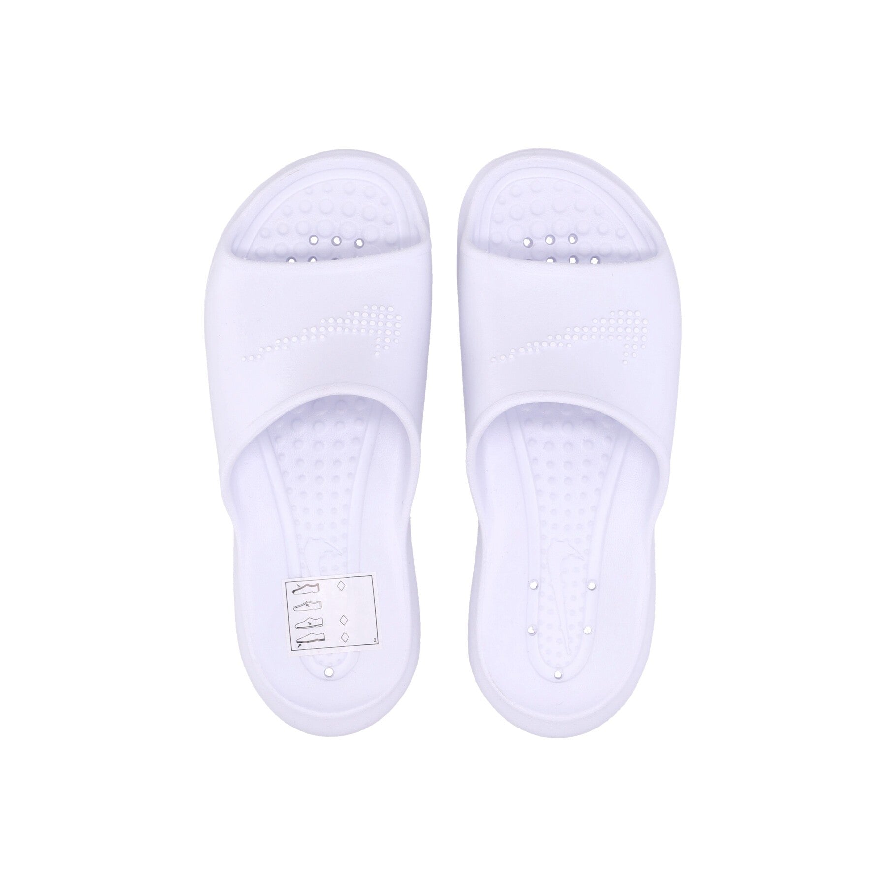 Fußbett mit perforierten Einsätzen zur Wasserableitung und aufgedrucktem Swoosh-Logo
