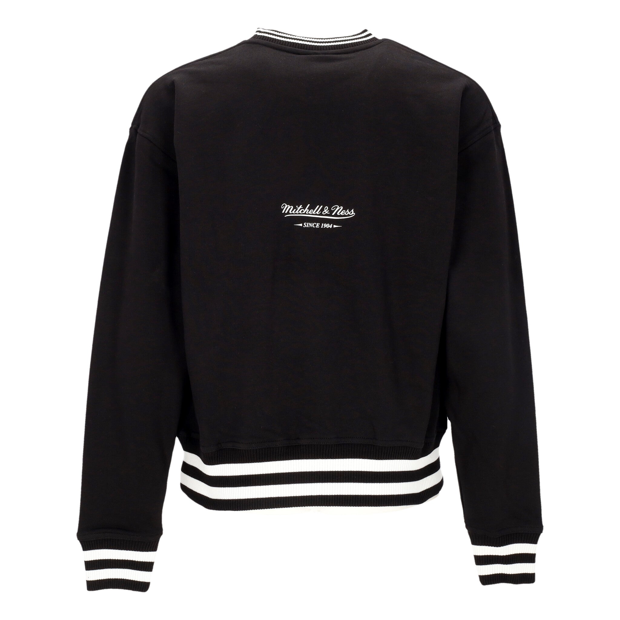 Das Mitchell & Ness-Logo ist auf der Rückseite aufgedruckt und auf einem an der Unterseite angebrachten Aufnäher gestickt