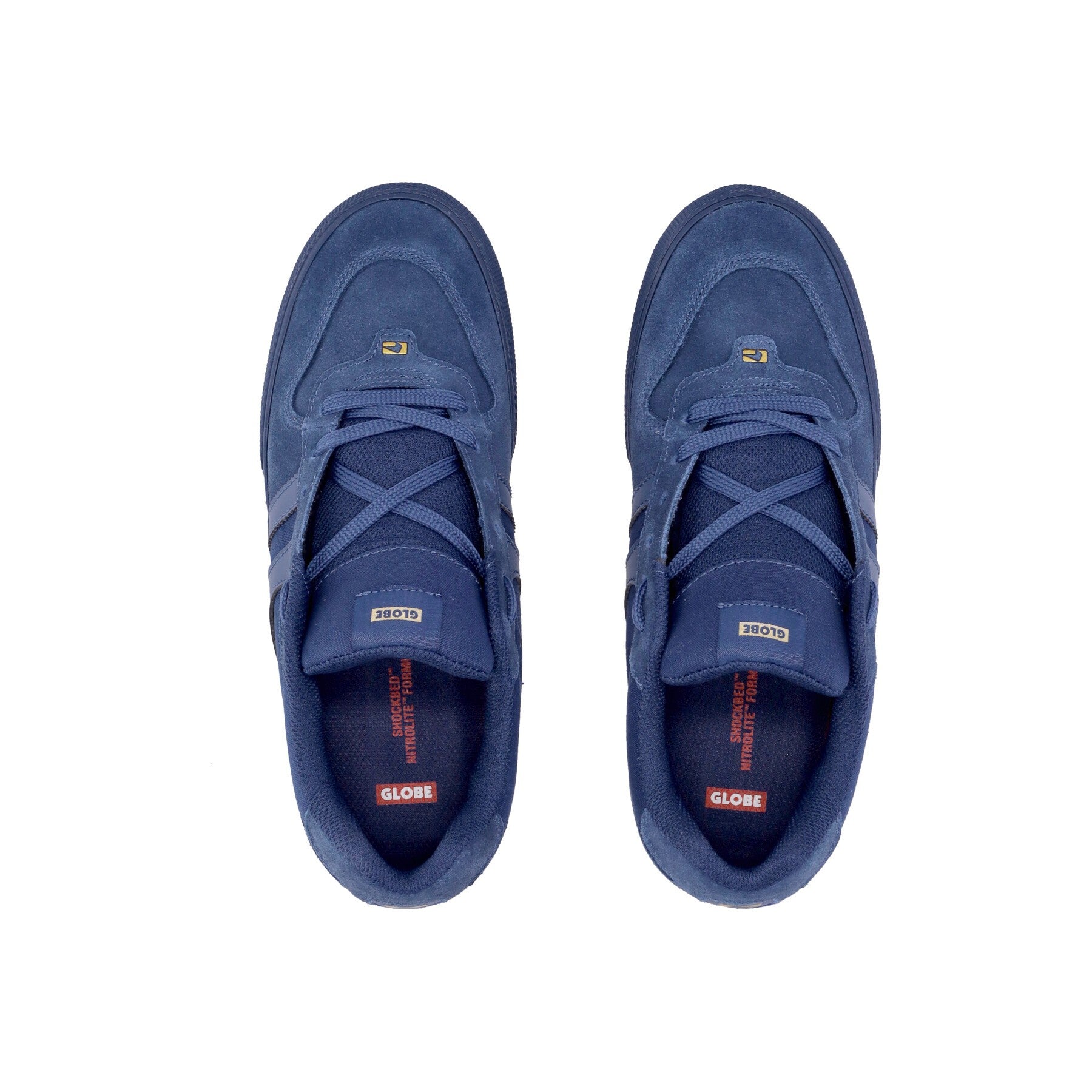 Globus-Logo auf dem auf der Zunge aufgenähten Etikett, auf der Fersenverstärkung und gummiert an den Seiten und an der Zwischensohle