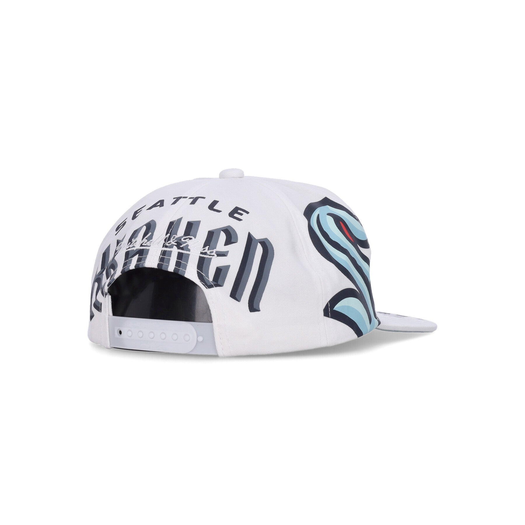 Aufgedrucktes Seattle Kraken-Logo auf der Vorderseite, an den Seiten und auf dem Schirm