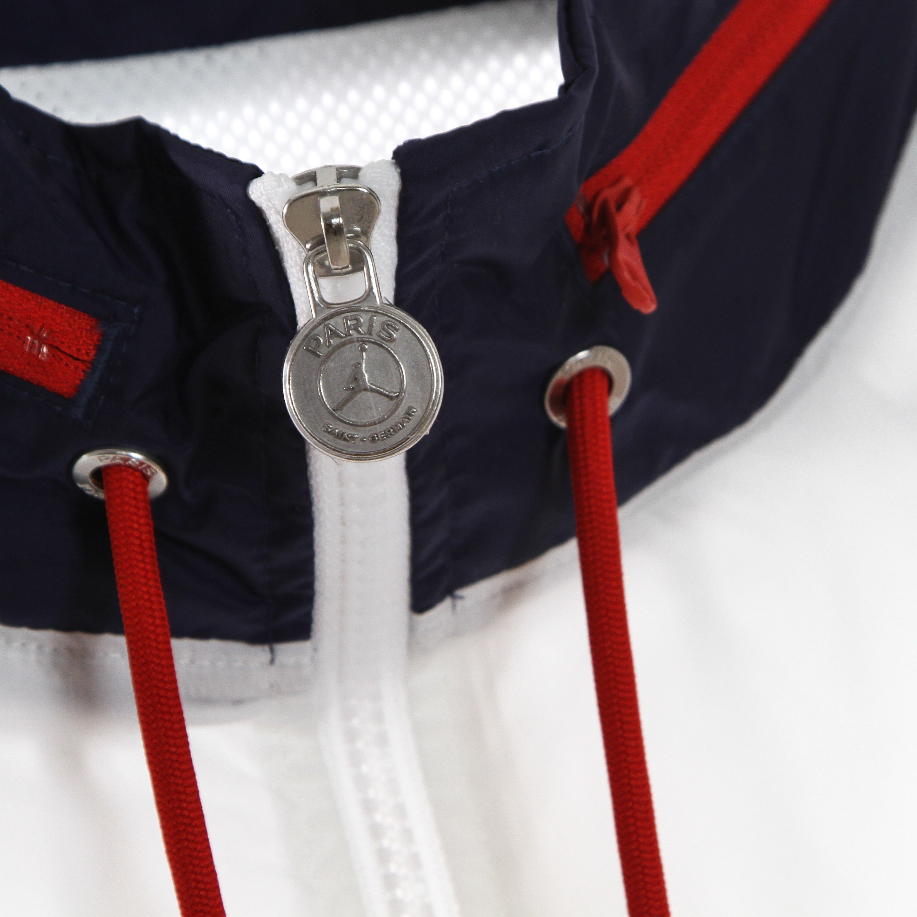 Paris Saint-Germain Herren-Windbreaker-Nylon-Kapuzenjacke Weiß/Mitternachtsmarine