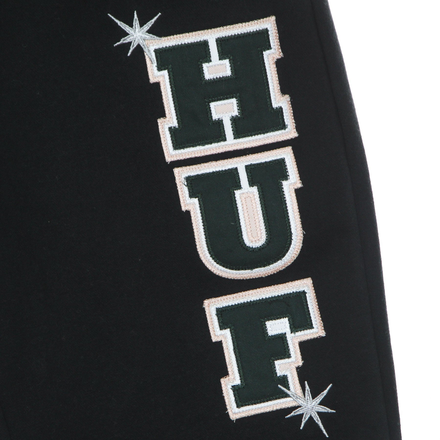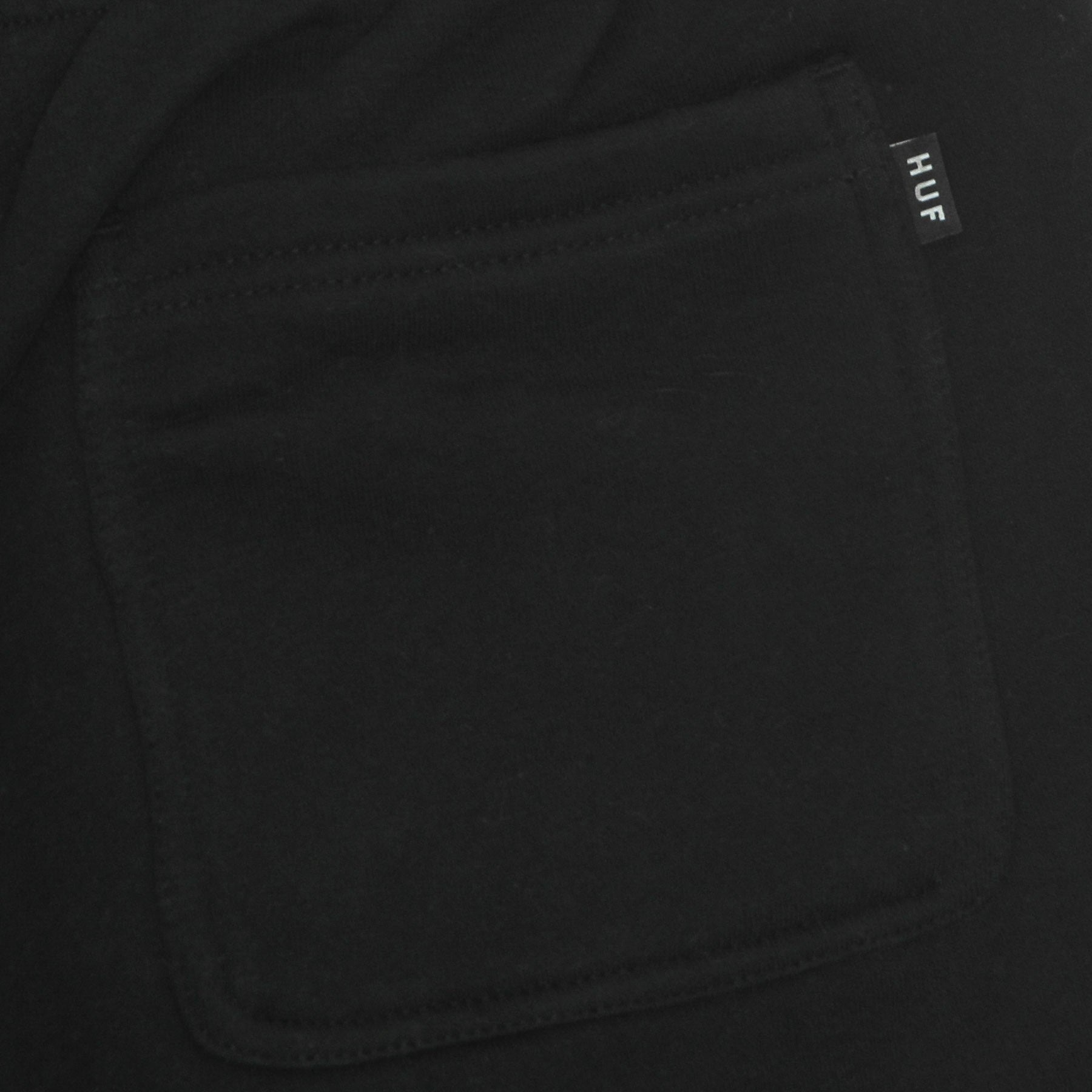 Huf logo embroidered on label sewn on the back and patch sewn on the left side