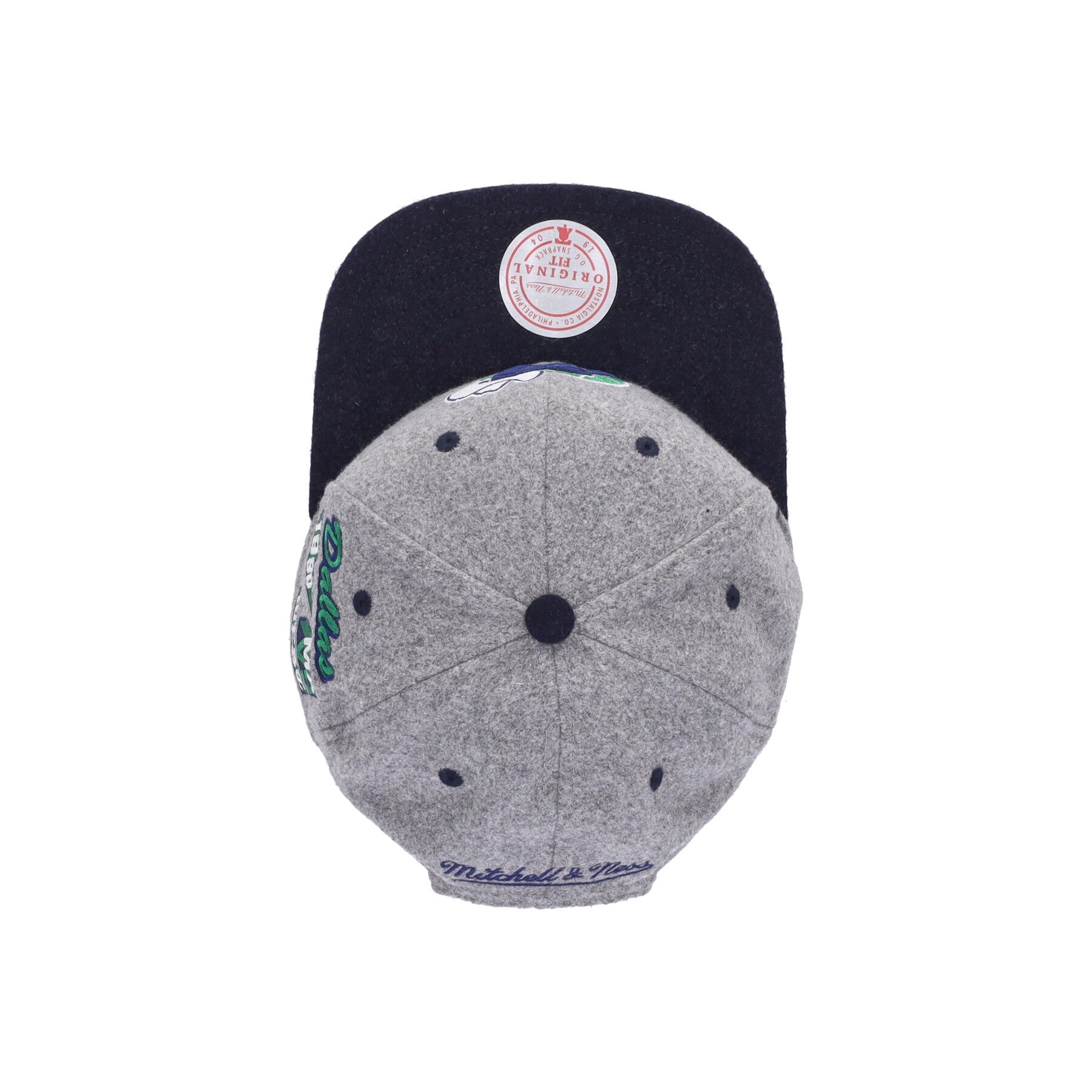 Mitchell & Ness logo embroidered on the back and on the label sewn on the inner band