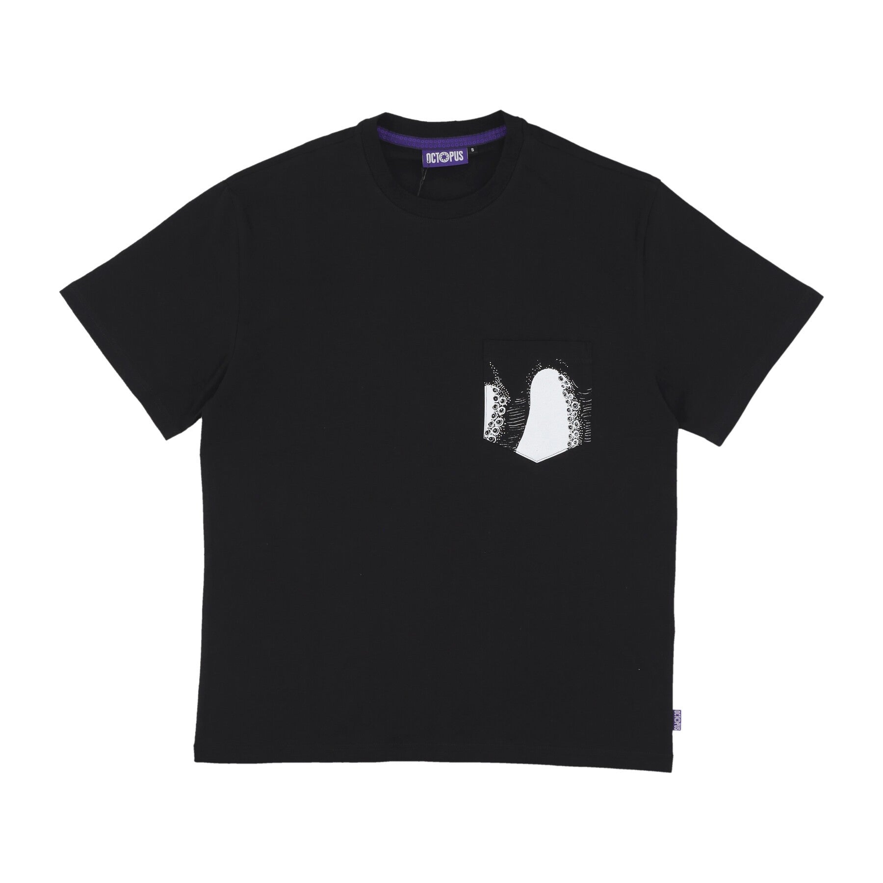 Octopus logo embroidered on flag label sewn on side