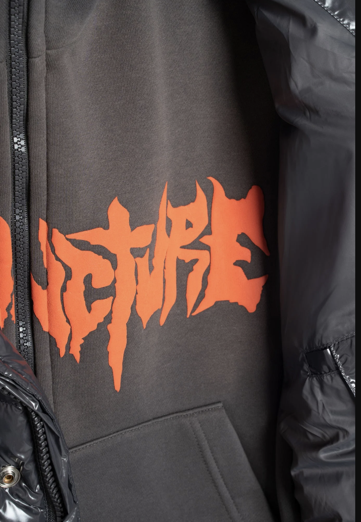 Hooding in a sweatshirt and internal lining with zip