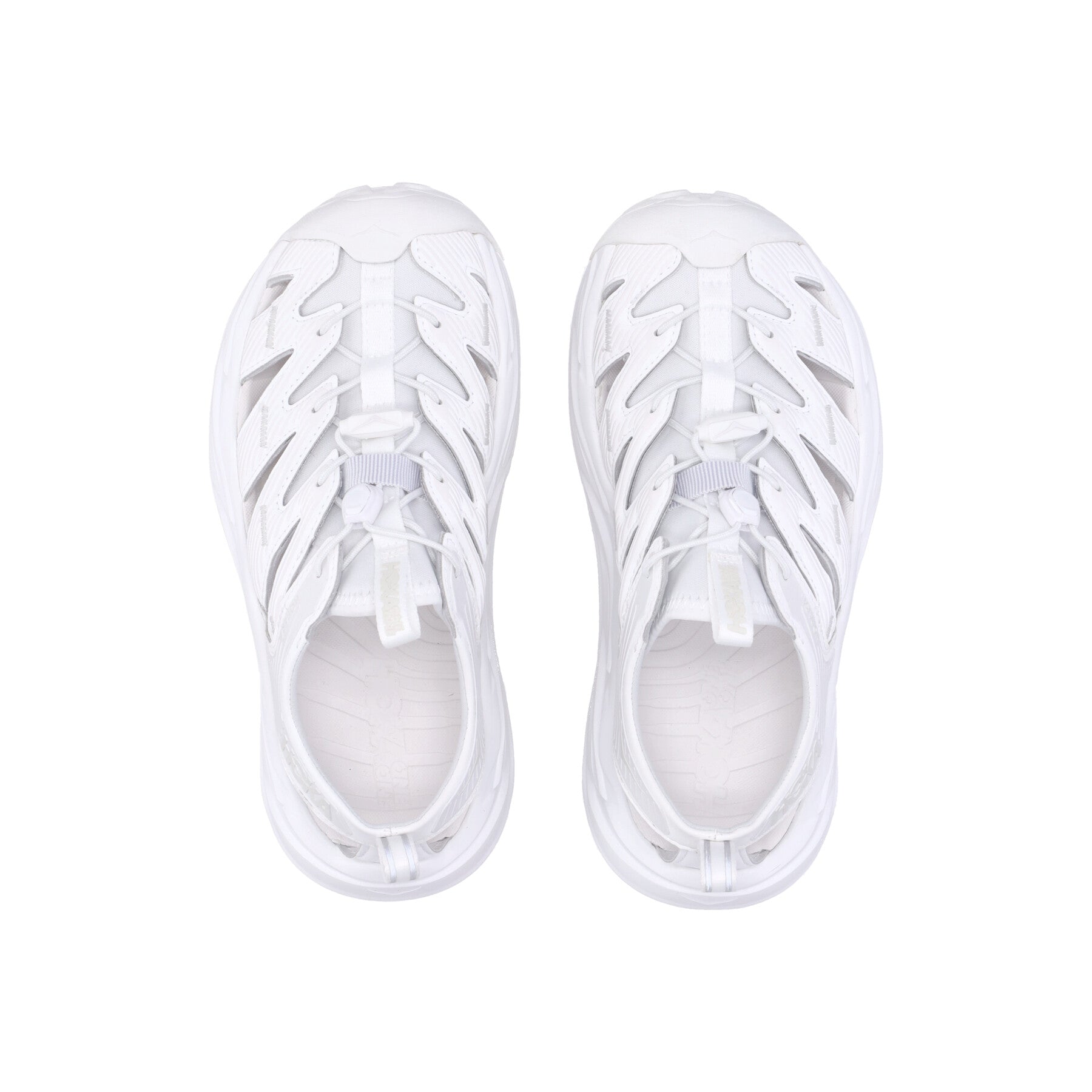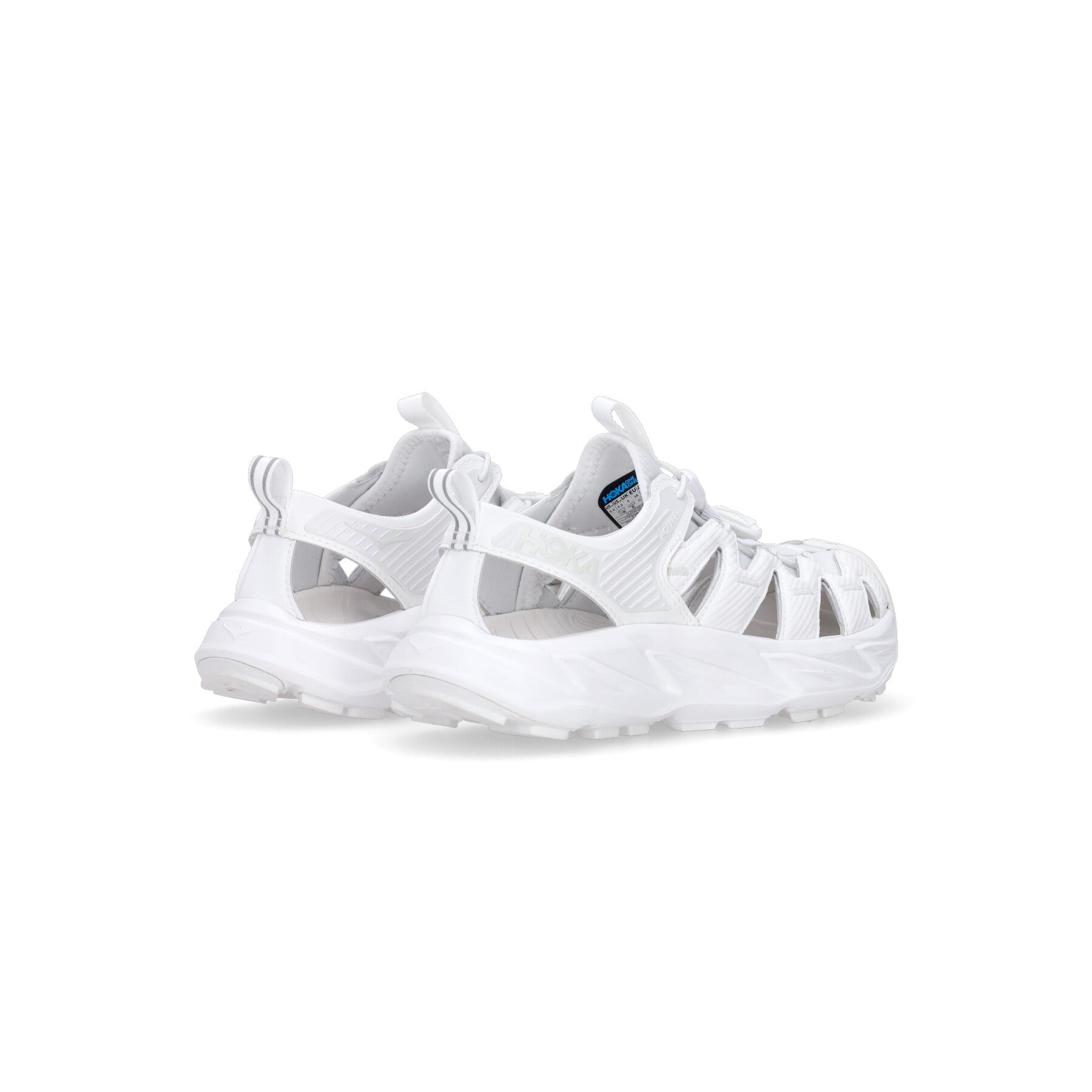 Rubberized Hoka logo applied on the side of the heel counter and on the tongue
