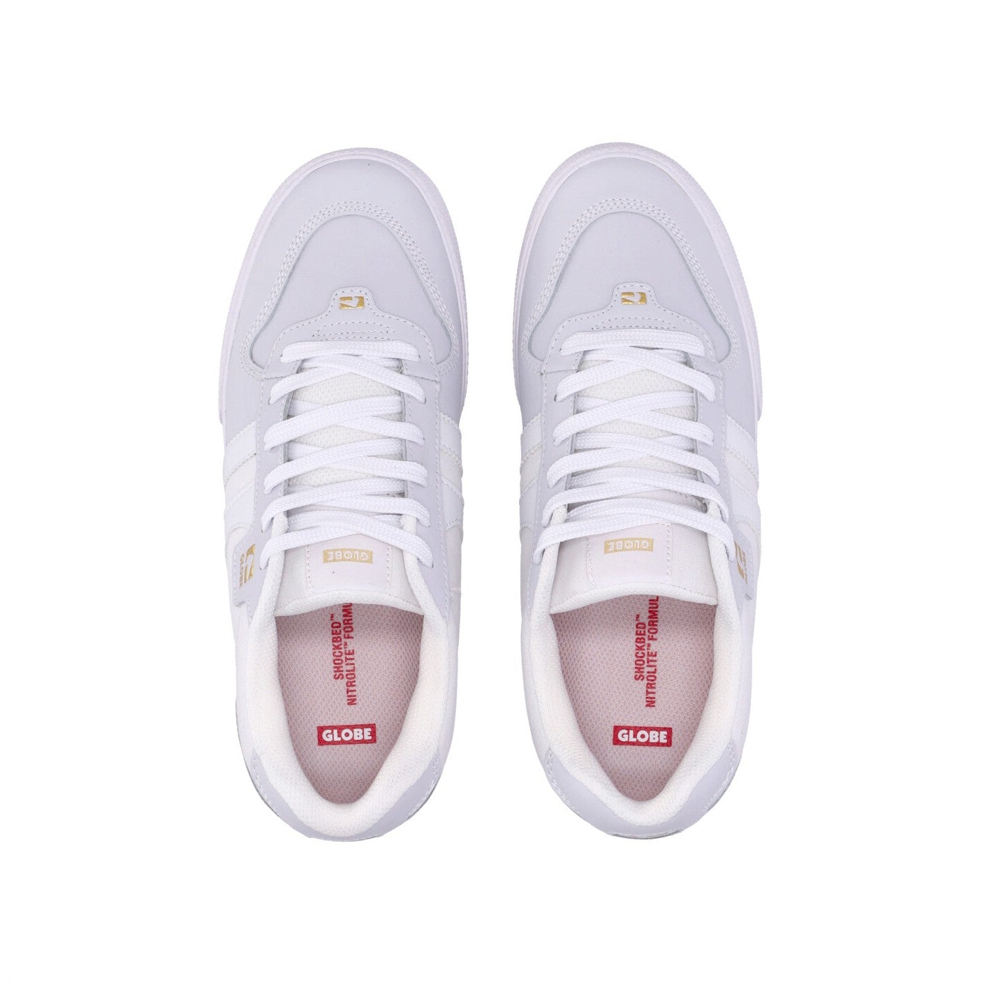 Globe logo on the label sewn on the tongue, on the heel reinforcement and rubberized on the sides and midsole