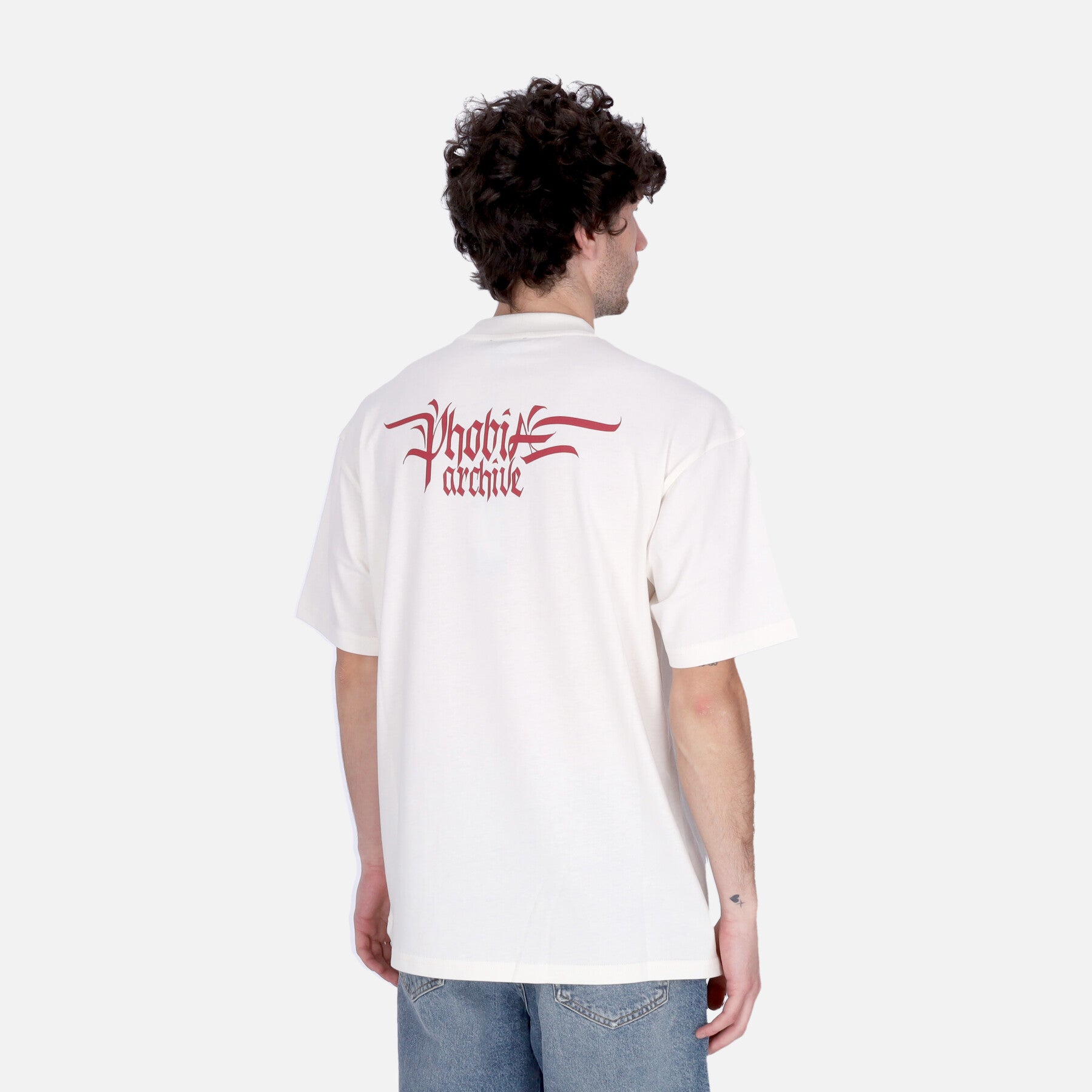Phobia logo printed in gothic version on the back