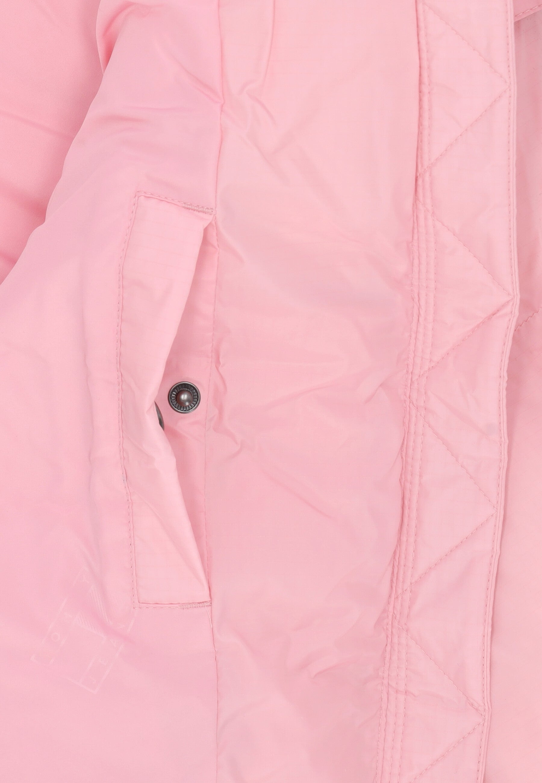 Piumino con collar alto, cierre de cremallera, dos bolsillos laterales con cremallera, capucha ajustable con cordón elástico y cierre con Pousssoir