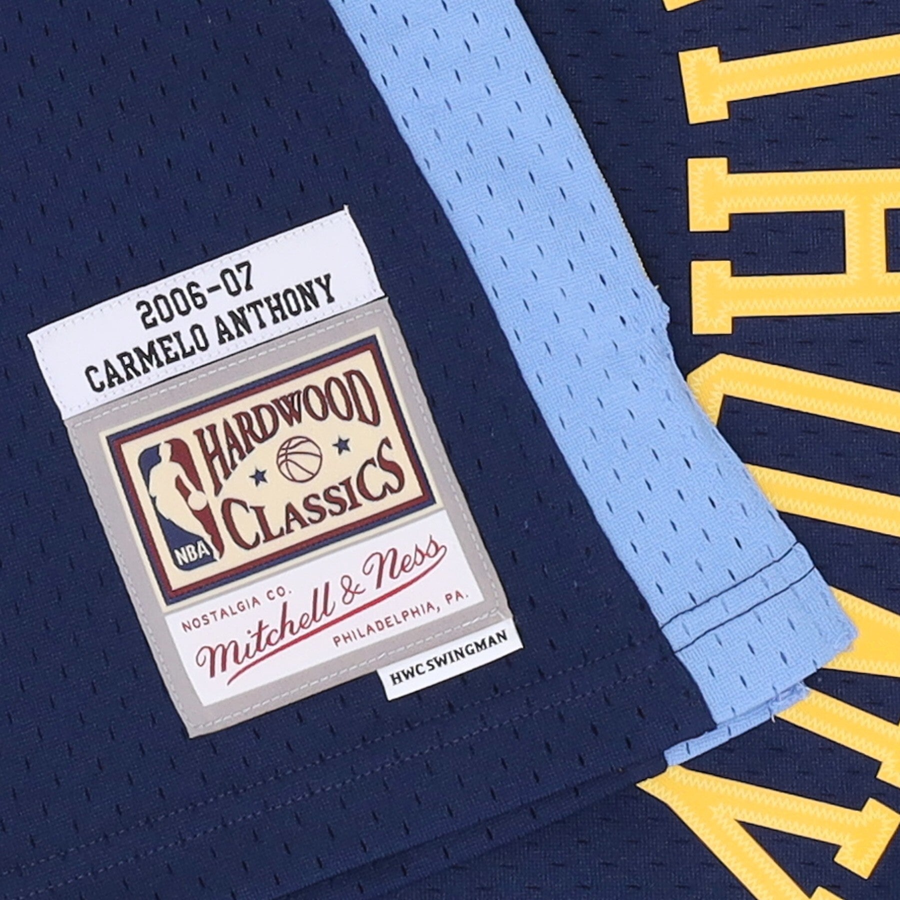 Le logo des classiques de bois dur et le logo Mitchell et Ness brodés sur l'étiquette cousus en bas