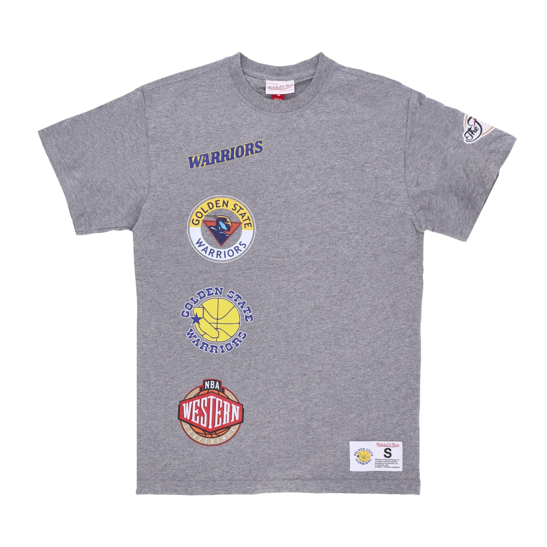 Le logo Golden State Warriors imprimé à l'avant, à l'arrière et brodé sur l'étiquette cousue en bas