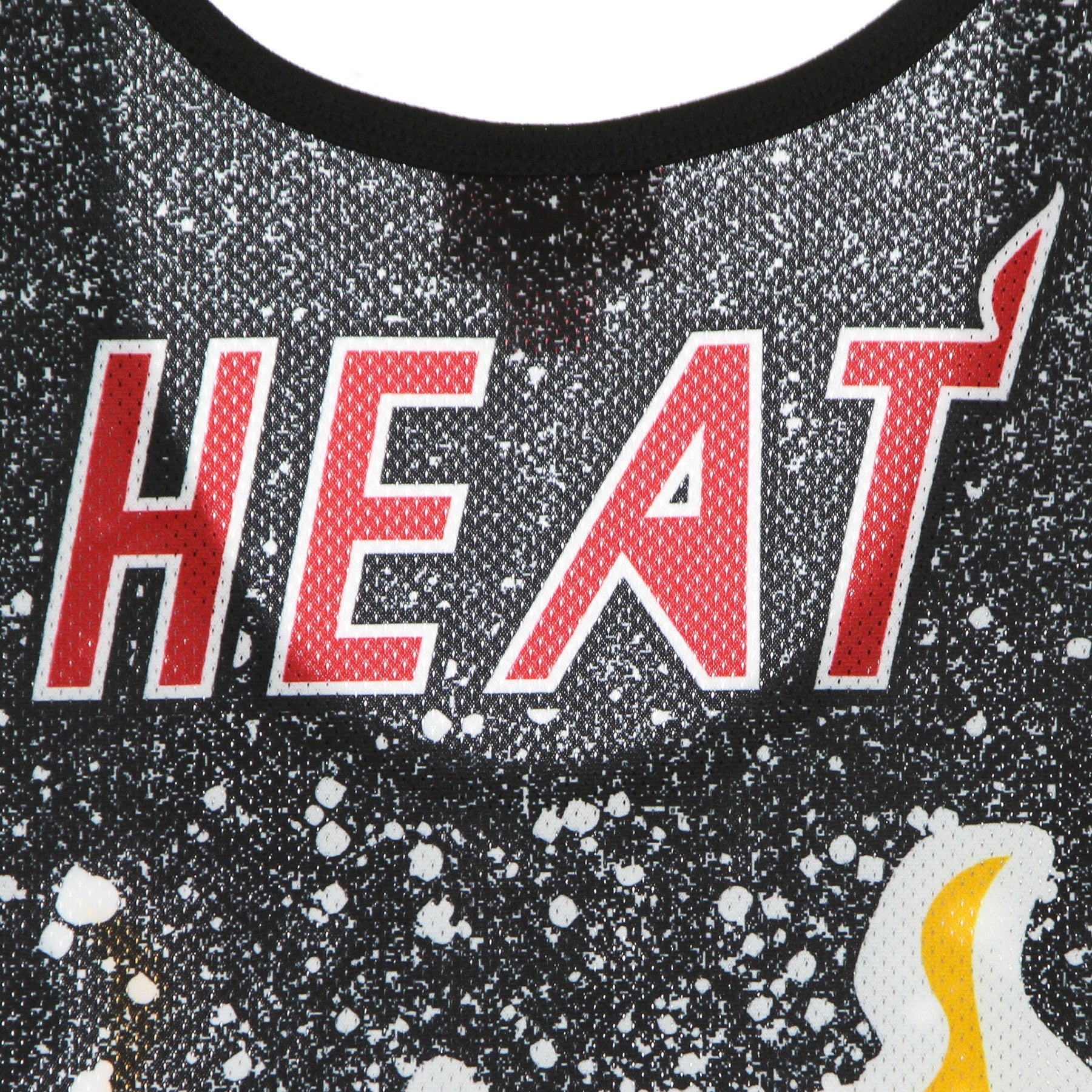 Le logo de Miami Heat imprimé à l'avant, à l'arrière et brodé sur l'étiquette cousue en bas