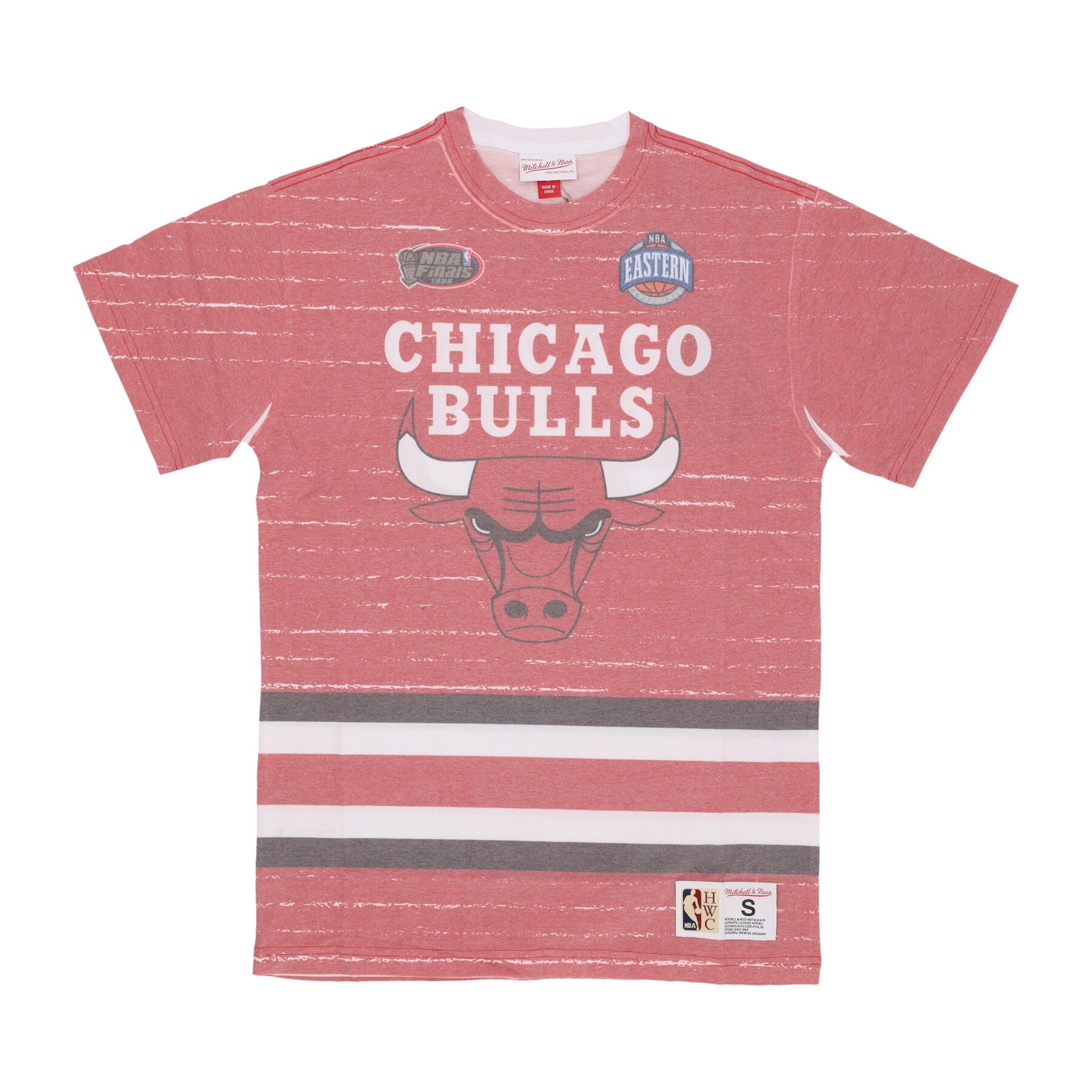 Logo Mitchell & Ness, logo NBA et logo Classics de bois dur brodé sur l'étiquette cousue en bas