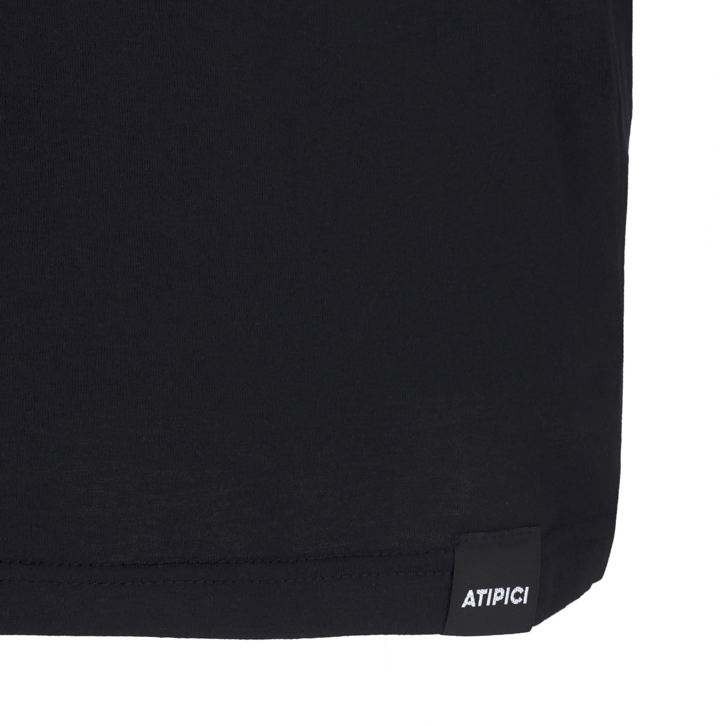 logo Atipici Imprimé sur le côté gauche, à l'arrière et brodé sur l'étiquette noire cousue en bas