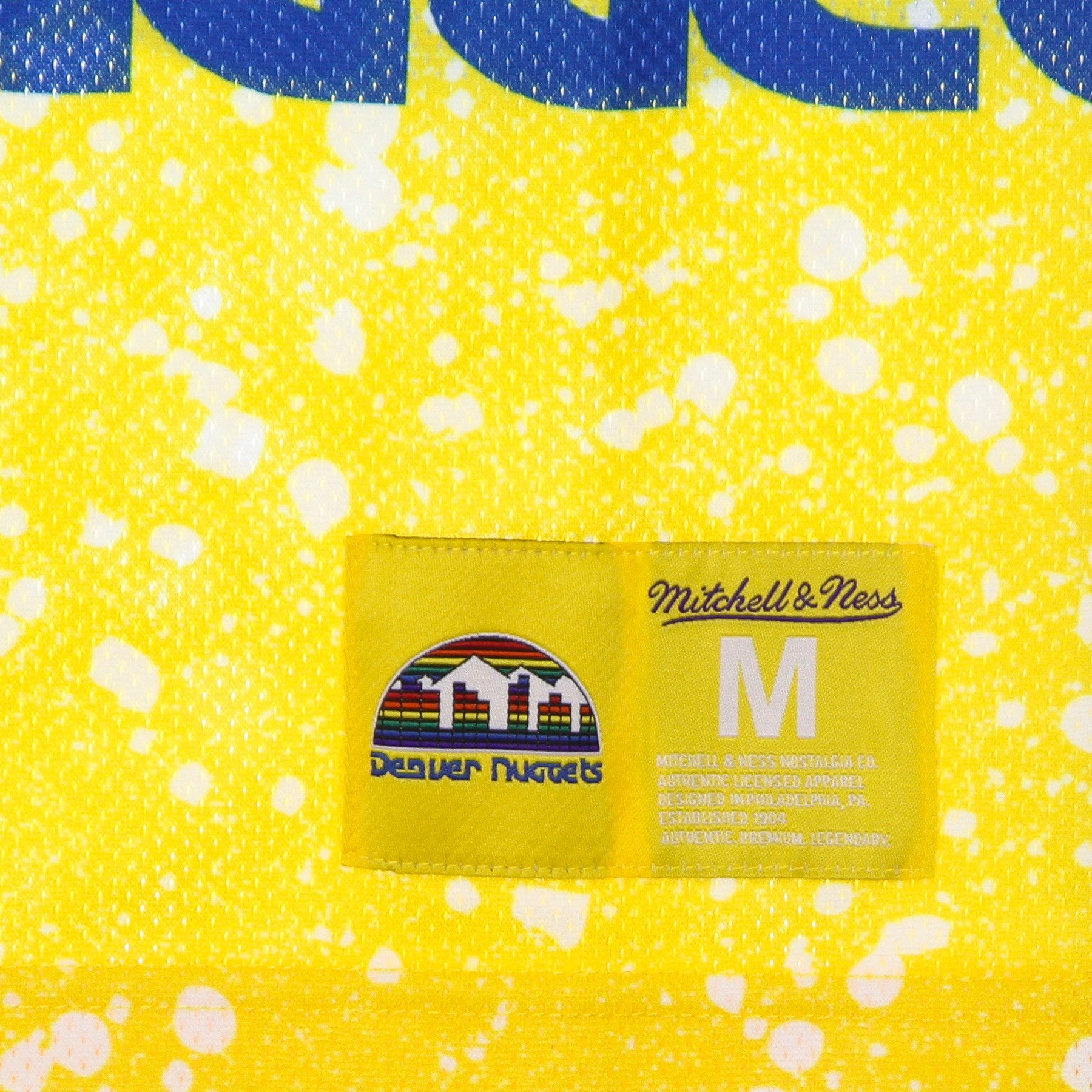 Logo Denver Nuggets imprimé à l'avant, à l'arrière et brodé sur l'étiquette cousue en bas