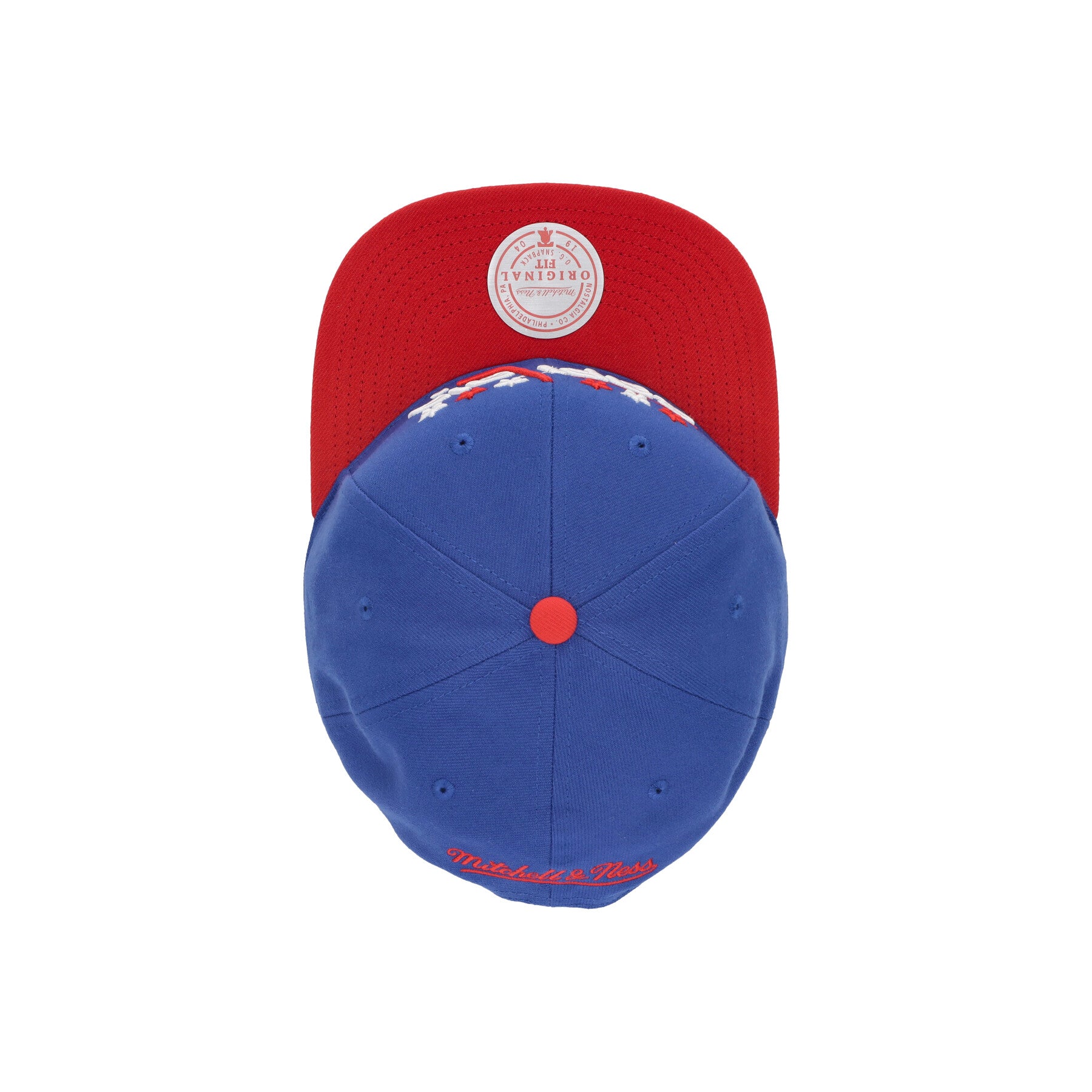 Le logo Mitchell & Ness brodé à l'arrière et sur le label cousu sur la bande interne
