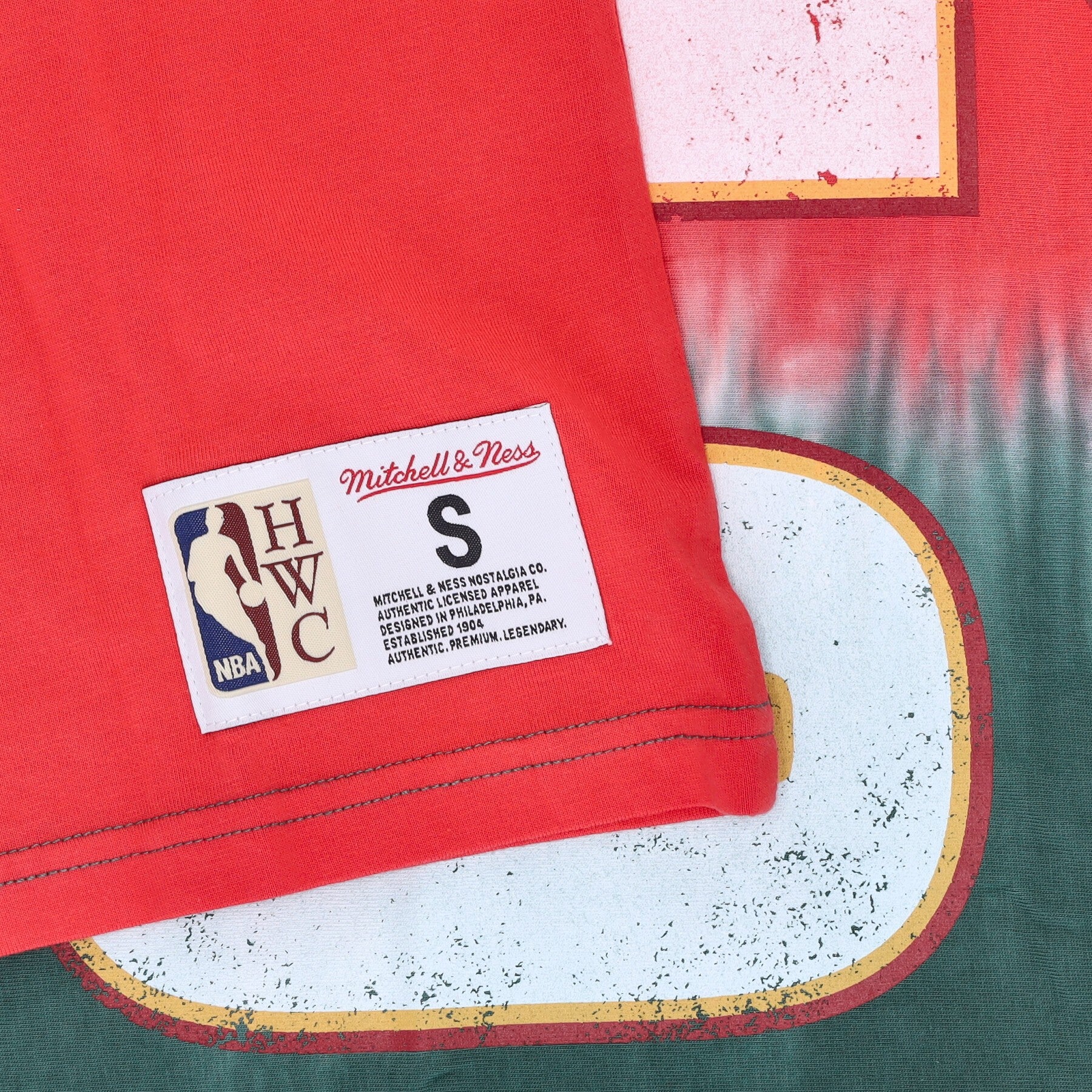 Le logo Mitchell et Ness brodé sur l'étiquette cousue en bas