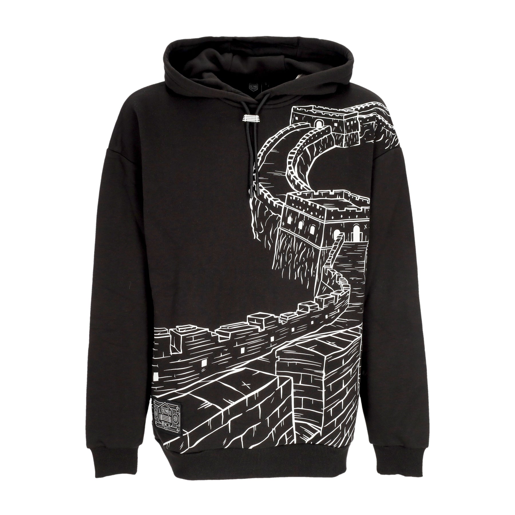 Felpa Leggera Cappuccio Uomo Chinese Wall Outline Over Hoodie Black/white