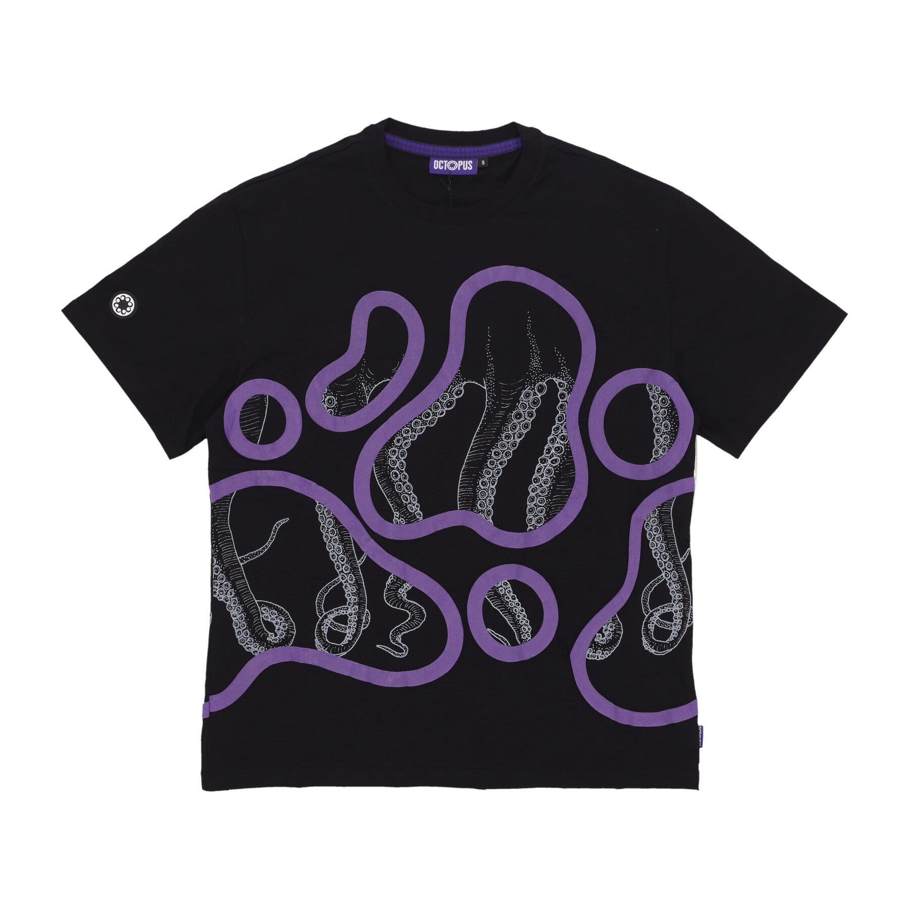 logo Octopus Su Patch Gommata Cucita Sulla Manica Destra e Ricamato Su Etichetta Cucita Sul Fondo