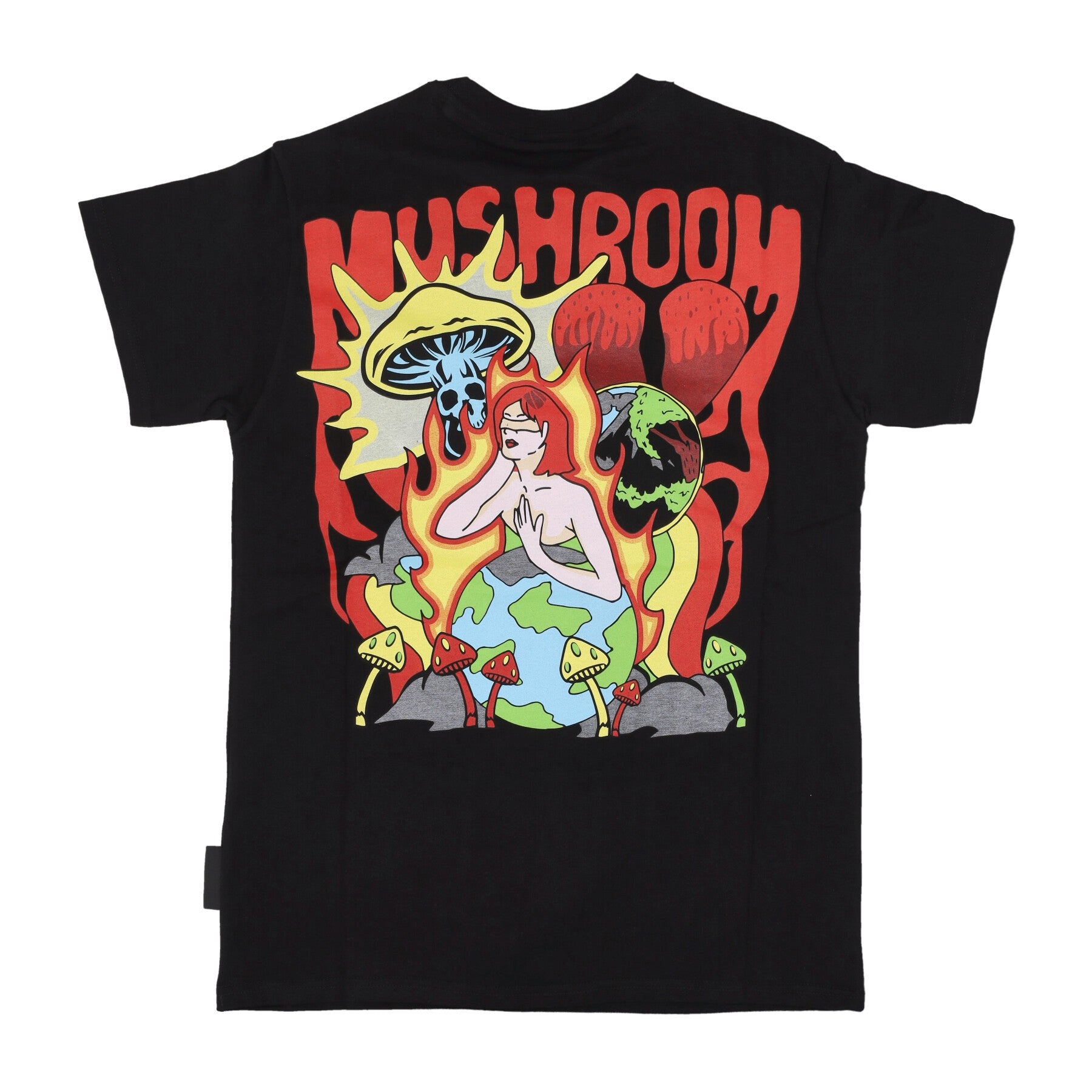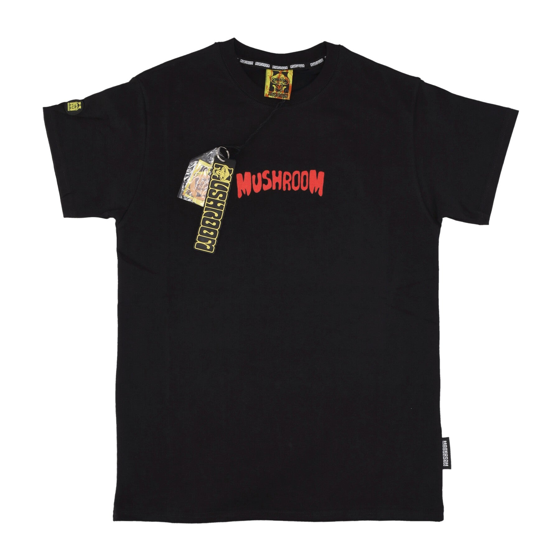 logo Mushroom Patch Gommata Applicato Sulla Manica Destra, Stampato Sul Fronte e Ricamato Su Etichetta Cucita Sul Lato Sinistro